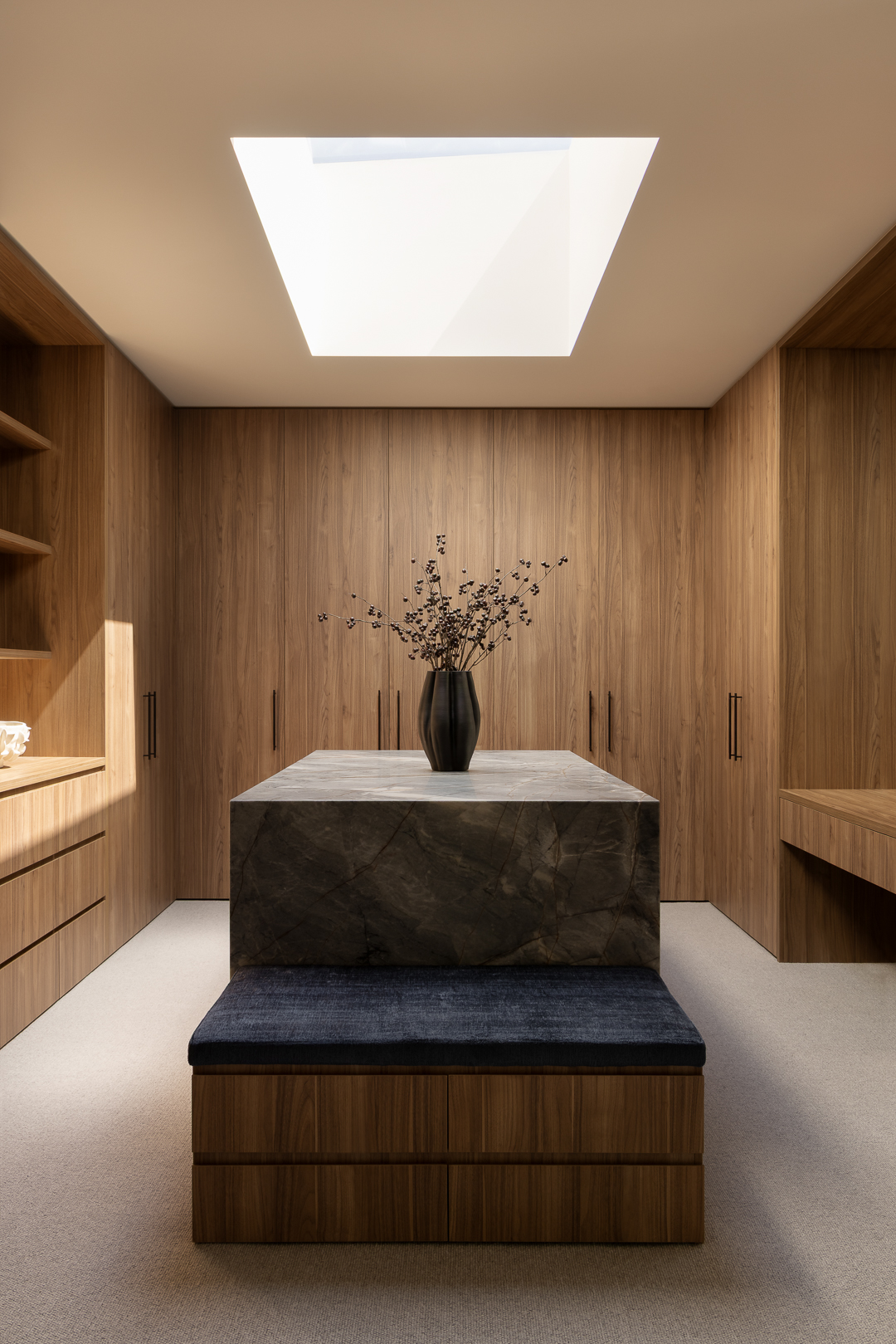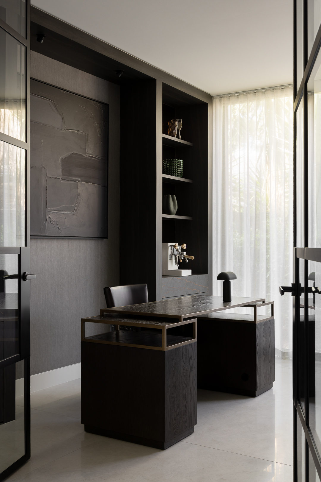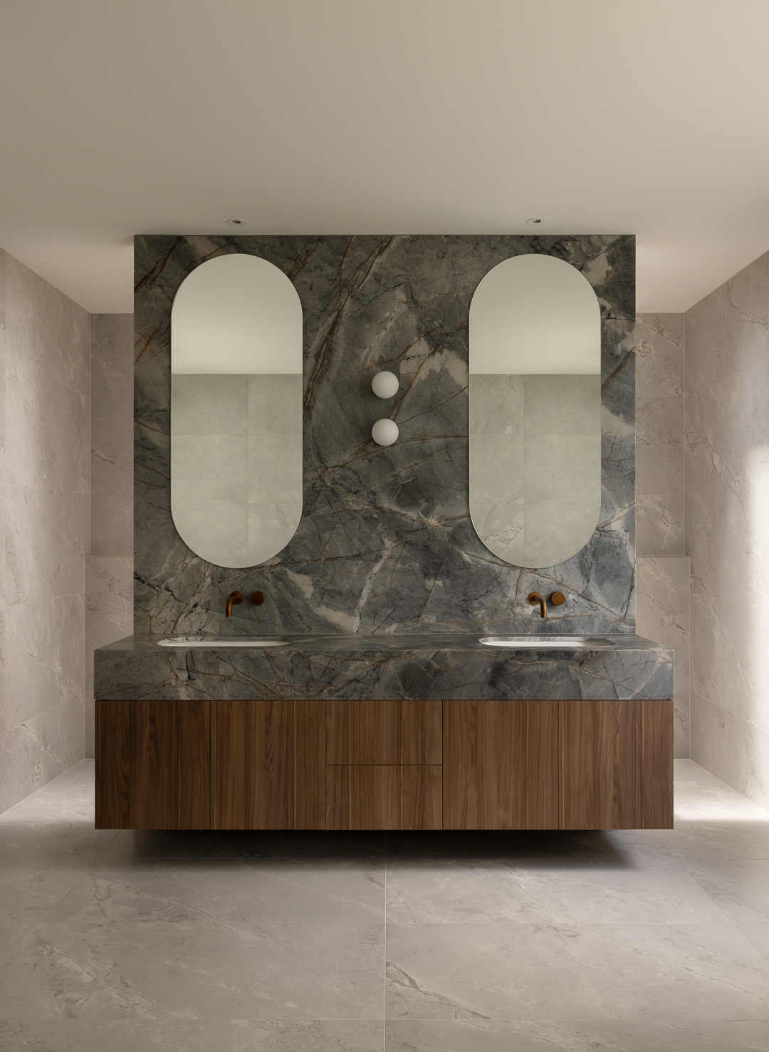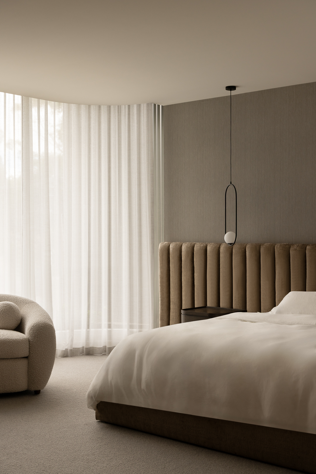 Defined by soaring ceilings and generous proportions, the home opens effortlessly to a striking 13-metre sliding door - dissolving the boundary between indoors and out. Beyond, a beautifully considered entertaining zone unfolds, framed by lush landscaping by Nathan Burkett and anchored by a sculptural infinity pool. At its heart, a sunken lounge creates a more intimate space for connection, while the adjoining kitchen and butler’s pantry are seamlessly integrated, with refined joinery and concealed appliances ensuring a clean, uninterrupted aesthetic. Marble detailing flows throughout, adding a sense of quiet luxury and material consistency. Each of the four bedrooms is thoughtfully appointed with its own ensuite, offering privacy and comfort for every member of the home. The result is a residence that feels both expansive and deeply considered; designed for contemporary family living, with an emphasis on connection, craftsmanship, and enduring quality.
